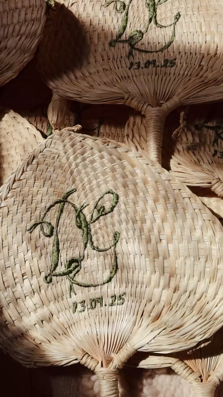 The Calma Fan is a delicate, handcrafted piece designed to bring both beauty and comfort to your special moments. Made from natural straw, its airy weave and subtle bohemian flair make it the perfect accessory for weddings, garden parties, or sunny celebrations.